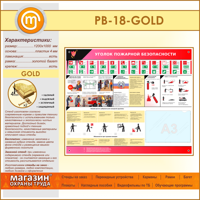 Стенд «Уголок пожарной безопасности» с карманом А3 формата (PB-18-GOLD) в Уфе купить