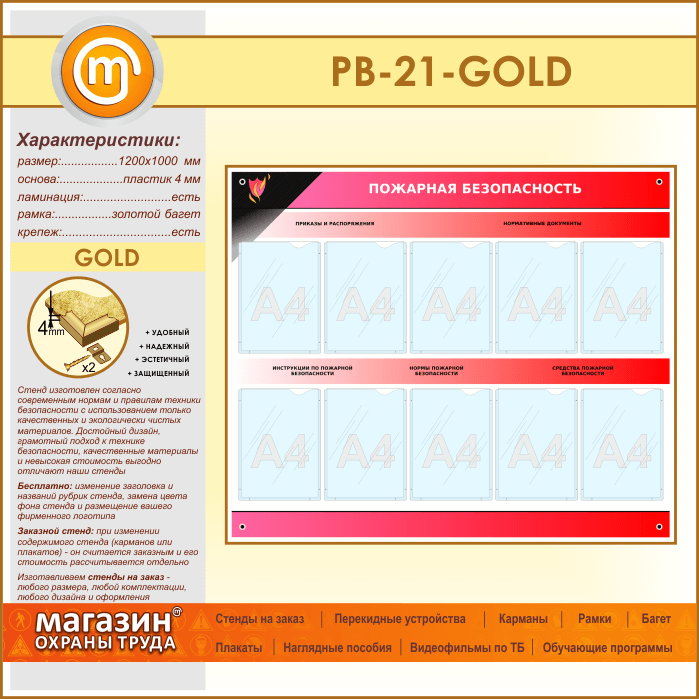Стенд «Пожарная безопасность» с 10 карманами (PB-21-GOLD) в Уфе купить