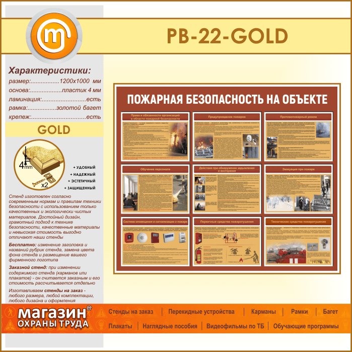 Стенд «Пожарная безопасность на объекте» (PB-22-GOLD) в Уфе купить