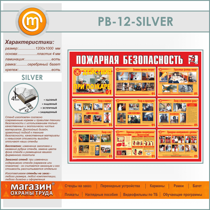 Стенд «Пожарная безопасность. Действия при пожаре» (PB-12-SILVER) в Уфе купить