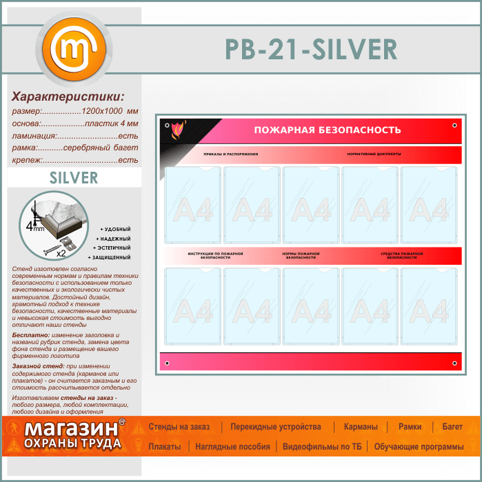 Стенд «Пожарная безопасность» с 10 карманами (PB-21-SILVER) в Уфе купить