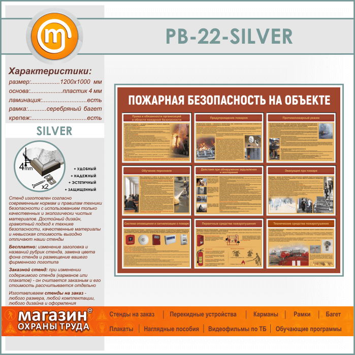 Стенд «Пожарная безопасность на объекте» (PB-22-SILVER) в Уфе купить