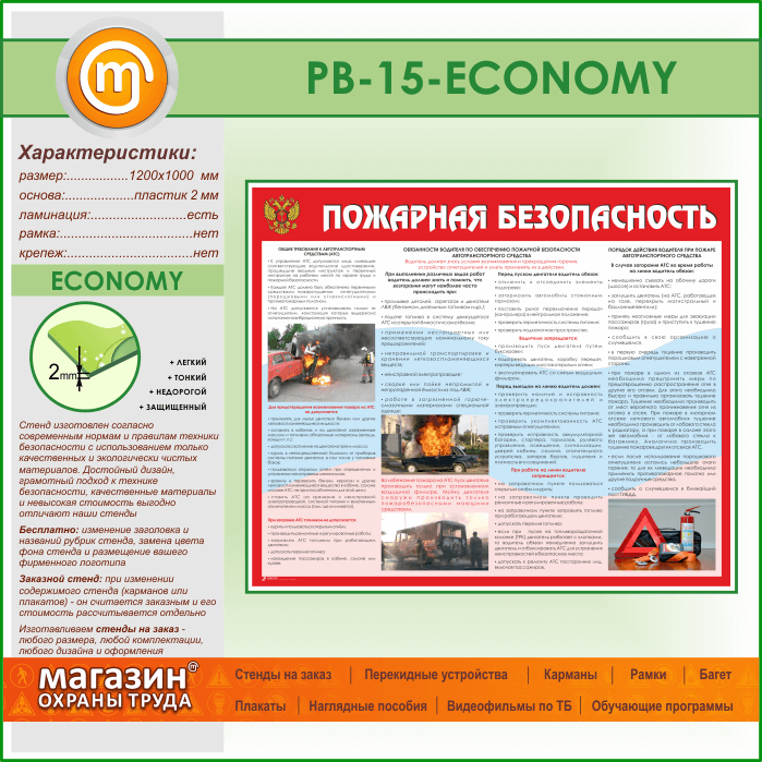 Стенд «Пожарная безопасность на автотранспорте» (PB-15-ECONOMY) в Уфе купить