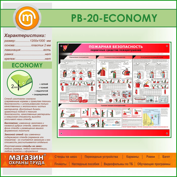 Стенд «Пожарная безопасность. Первичные средства пожаротушения» (PB-20-ECONOMY) в Уфе купить