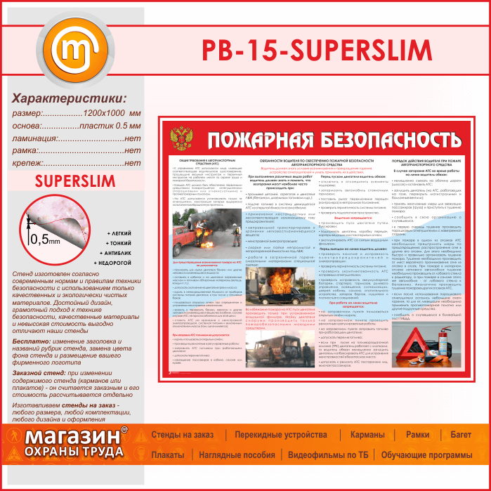 Стенд «Пожарная безопасность на автотранспорте» (PB-15-SUPERSLIM) в Уфе купить