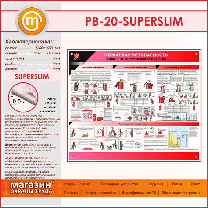 Стенд «Пожарная безопасность. Первичные средства пожаротушения» (PB-20-SUPERSLIM) в Уфе купить