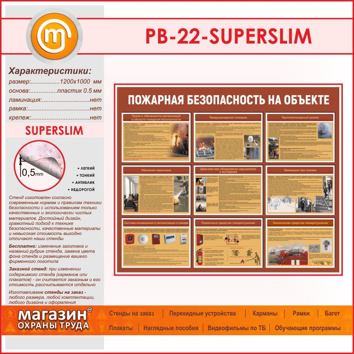 Стенд «Пожарная безопасность на объекте» (PB-22-SUPERSLIM) в Уфе купить
