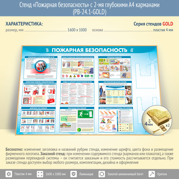 Стенд «Пожарная безопасность» с 2-мя глубокими А4 карманами (PB-24.1-GOLD) в Уфе купить