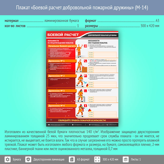 Плакат «Боевой расчет добровольной пожарной дружины» (М-14, ламинированная бумага, А3, 1 лист) в Уфе купить