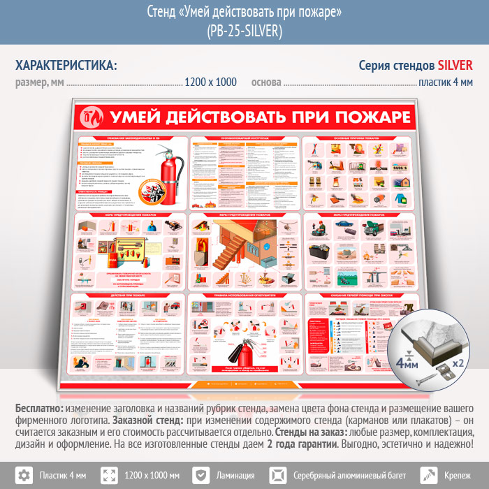 Стенд «Умей действовать при пожаре» (PB-25-SILVER) в Уфе купить