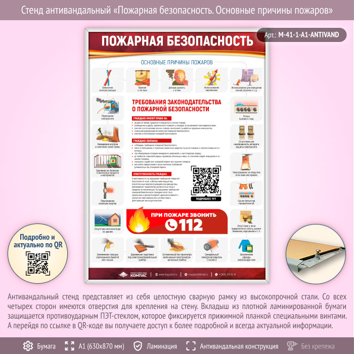 Стенд антивандальный «Пожарная безопасность. Основные причины пожаров» (M-41-1-А1-ANTIVAND) в Уфе купить