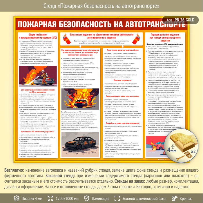 Стенд «Пожарная безопасность на автотранспорте» (PB-26-GOLD) в Уфе купить