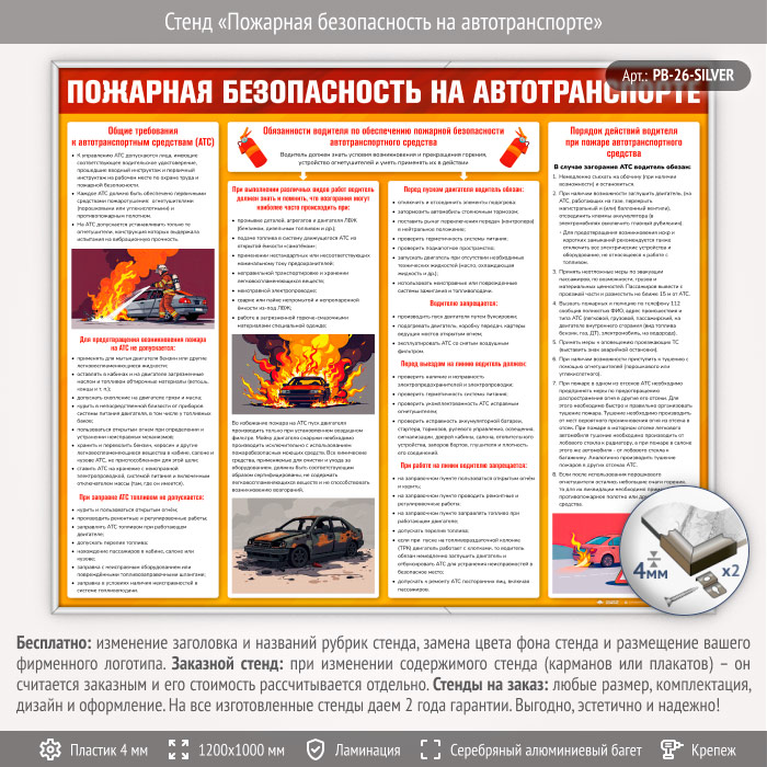 Стенд «Пожарная безопасность на автотранспорте» (PB-26-SILVER) в Уфе купить