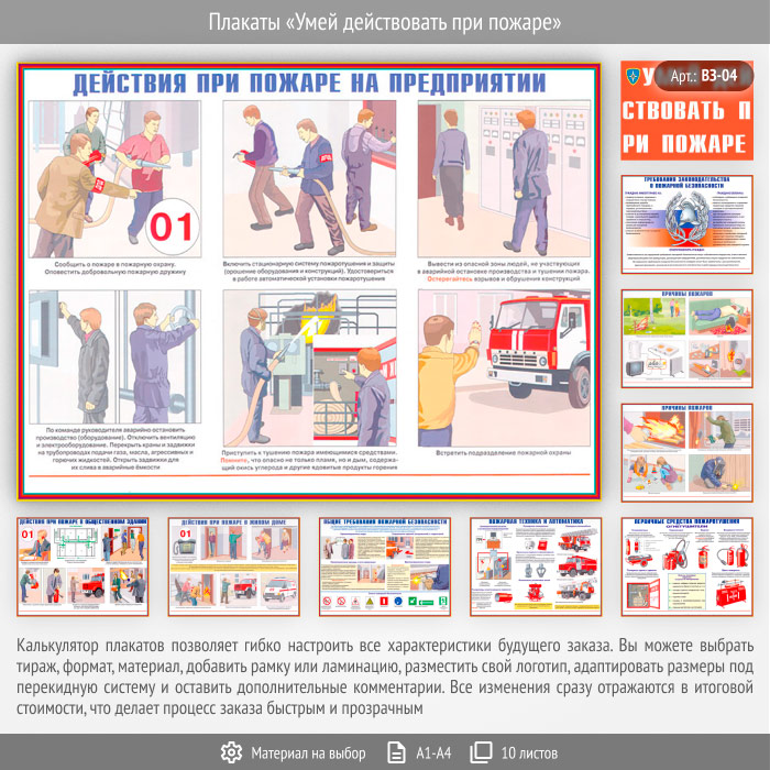 Плакаты «Умей действовать при пожаре» (ВЗ-04, 10 листов) в Уфе купить