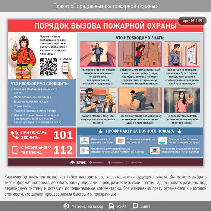 Плакат «Порядок вызова пожарной охраны» с QR (М-143, 1 лист) в Уфе купить
