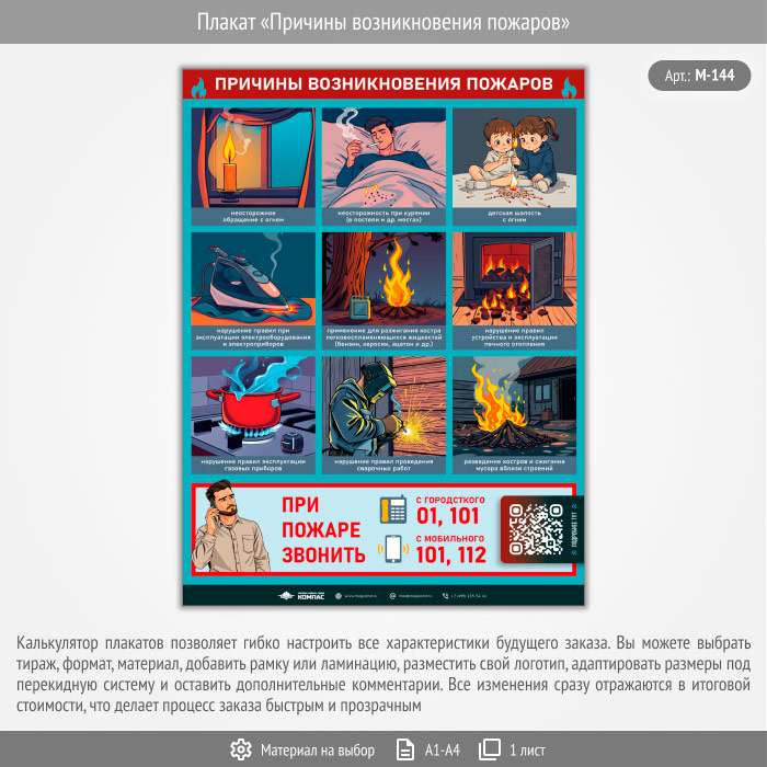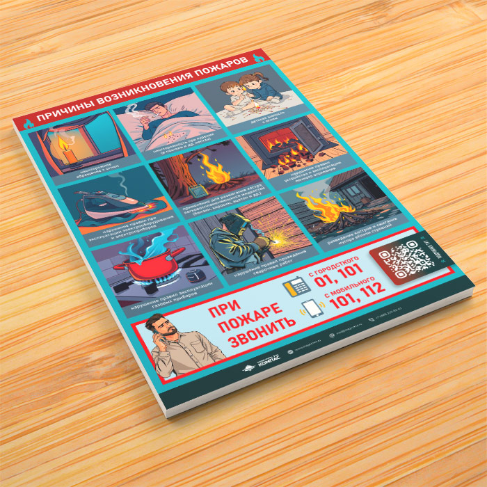 Плакат «Причины возникновения пожаров» с QR (М-144, 1 лист) в Уфе купить