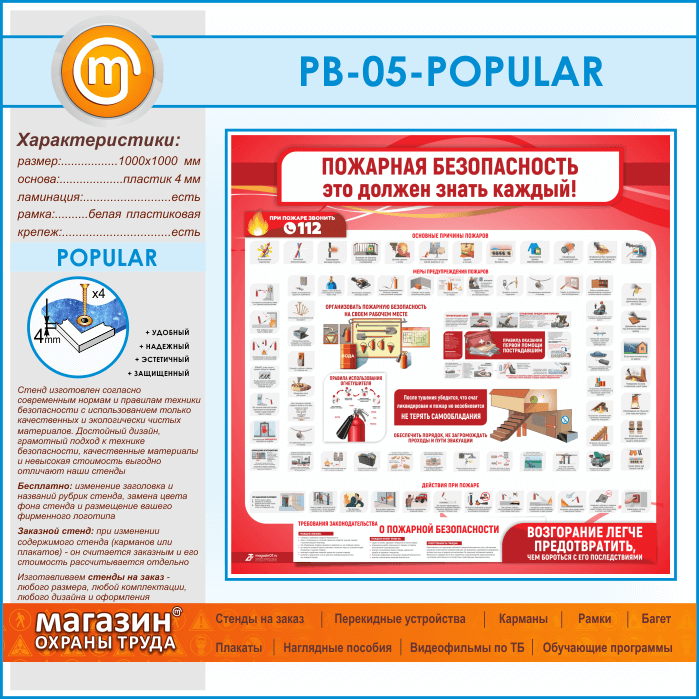 Стенд «Пожарная безопасность. Это должен знать каждый» (PB-05-POPULAR) в Уфе купить