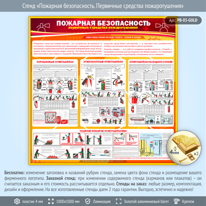 Стенд «Пожарная безопасность. Первичные средства пожаротушения» (PB-03-GOLD) в Уфе купить