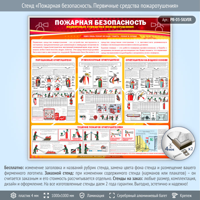 Стенд «Пожарная безопасность. Первичные средства пожаротушения» (PB-03-SILVER) в Уфе купить