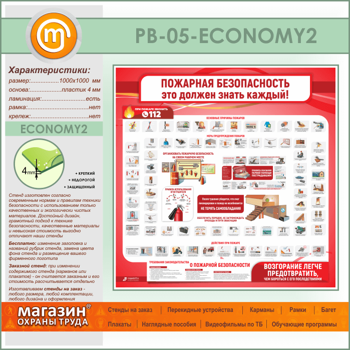 Стенд «Пожарная безопасность. Это должен знать каждый» (PB-05-ECONOMY2) в Уфе купить