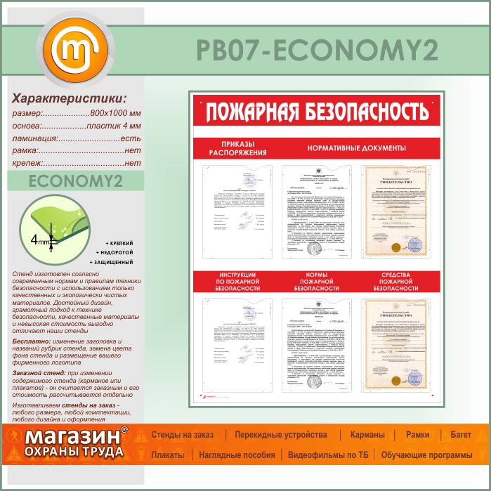 Стенд «Пожарная безопасность» с 6 карманами (PB-07-ECONOMY2) в Уфе купить