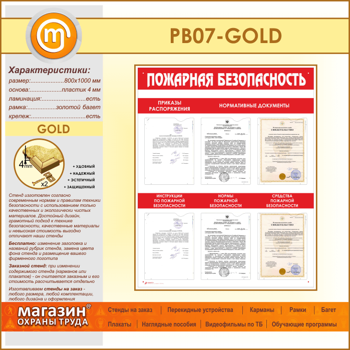 Стенд «Пожарная безопасность» с 6 карманами (PB-07-GOLD) в Уфе купить