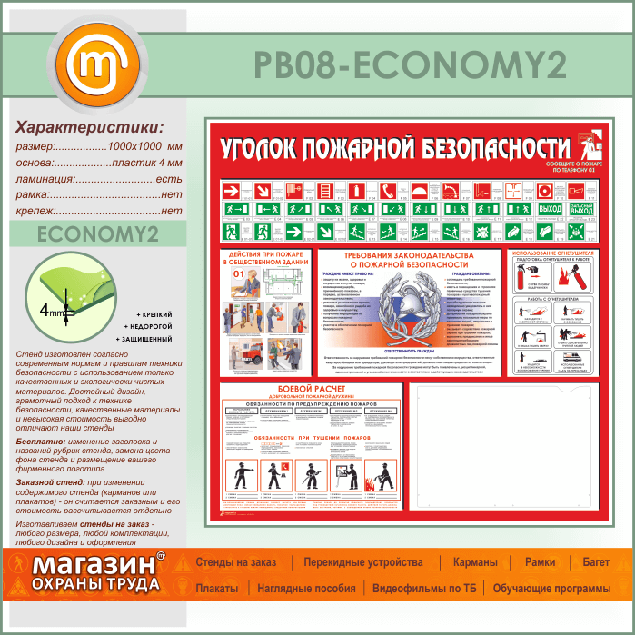 Стенд «Уголок пожарной безопасности» с карманом А3 формата (PB-08-ECONOMY2) в Уфе купить