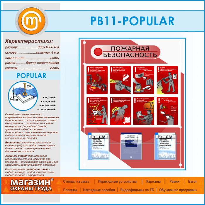 Стенд «Стенд пожарная безопасность в строительстве» с 3 объемными карманами (PB-11-POPULAR) в Уфе купить