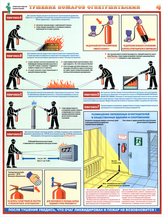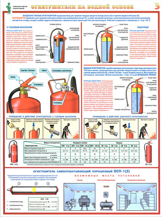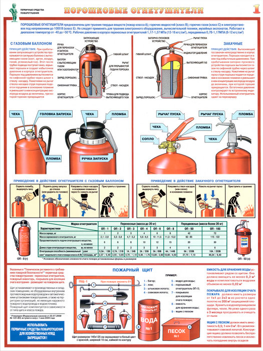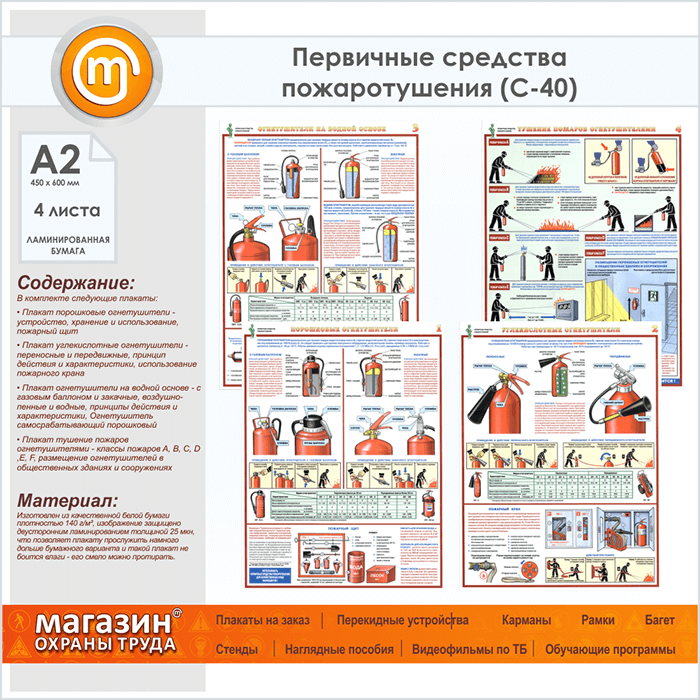 Плакаты «Первичные средства пожаротушения» (С-40, ламинированная бумага, А2, 4 листа) в Уфе купить