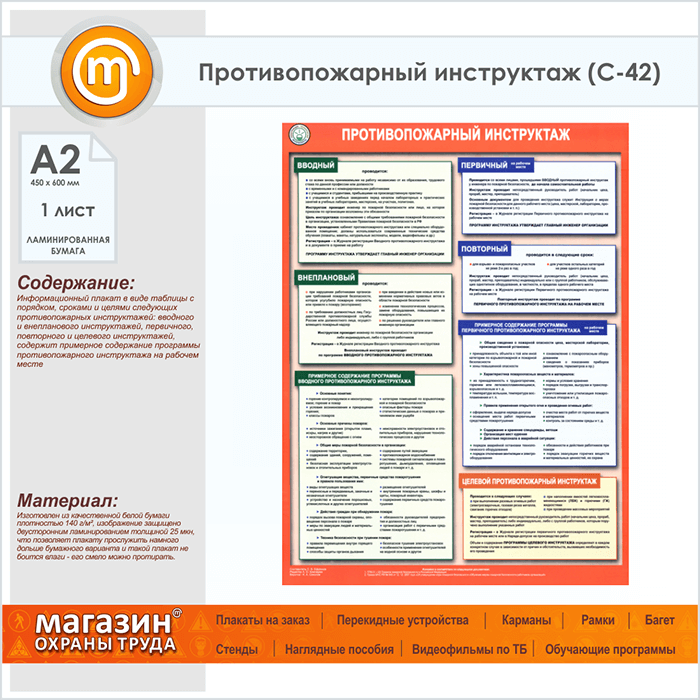 Плакат «Противопожарный инструктаж» (С-42, ламинированная бумага, А2, 1 лист) в Уфе купить