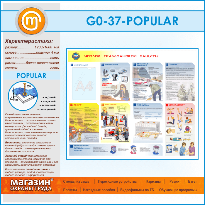 Стенд «Уголок гражданской защиты» с карманом (GO-37-POPULAR)