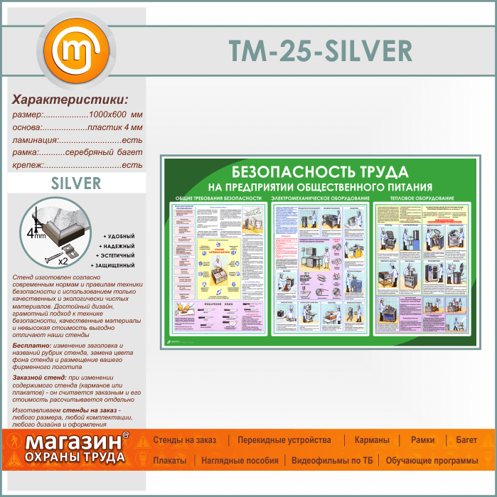 Стенд «Безопасность труда на предприятиях общественного питания» (TM-25-SILVER) в Уфе купить