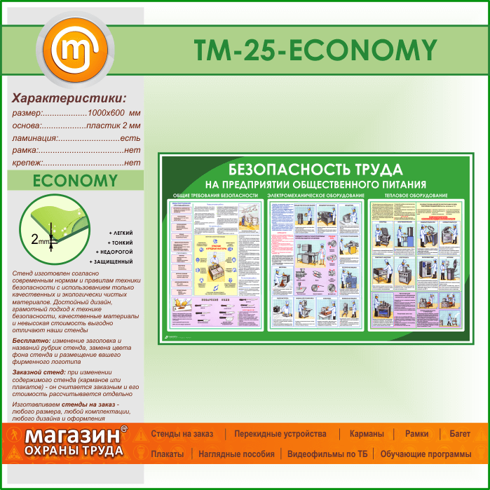 Стенд «Безопасность труда на предприятиях общественного питания» (TM-25-ECONOMY) в Уфе купить