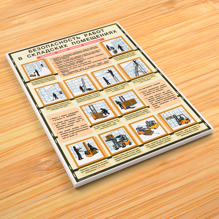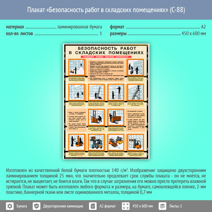 Плакат «Безопасность работ в складских помещениях» (С-88, ламинированная бумага, А2, 1 лист) в Уфе купить