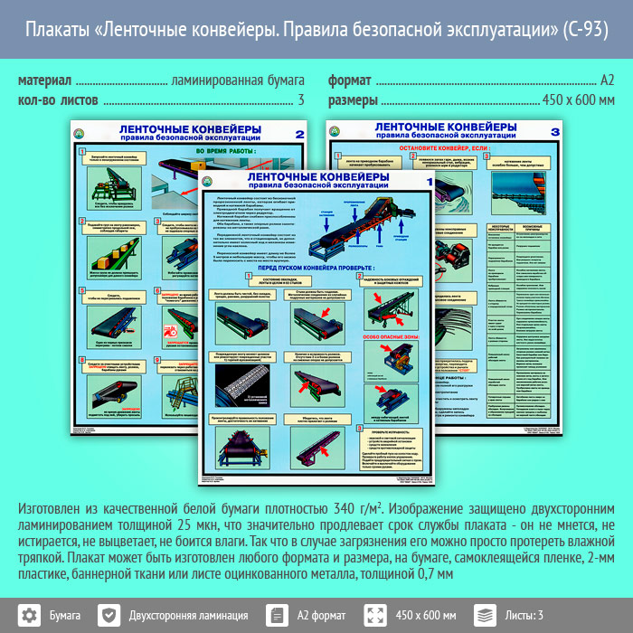 Плакаты «Ленточные конвейеры. Правила безопасной эксплуатации» (С-93, ламинированная бумага, А2, 3 листа) в Уфе купить