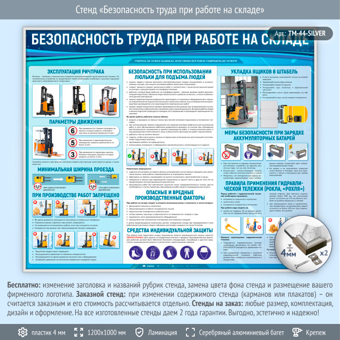 Стенд «Безопасность труда при работе на складе» (TM-44-SILVER) в Уфе купить