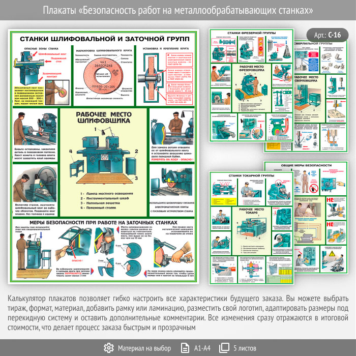 Плакат «Безопасность работ на металлообрабатывающих станках» (С-16, 5 листов) в Уфе купить