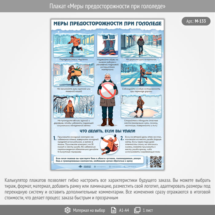 Плакат «Меры предосторожности при гололеде» с QR (М-133, 1 лист) в Уфе купить