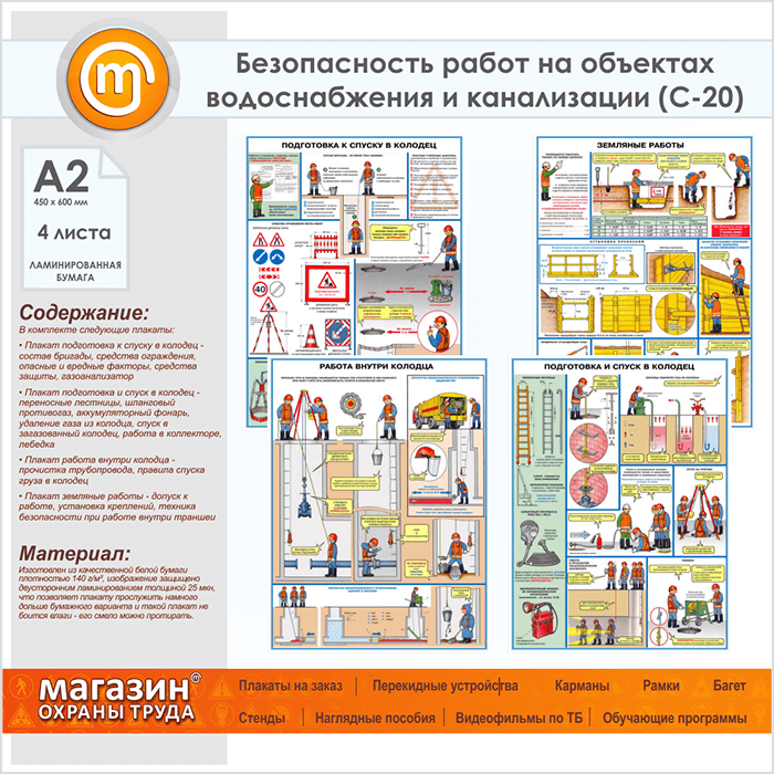 Плакаты «Безопасность работ на объектах водоснабжения и канализации» (С-20, ламинированная бумага, А2, 4 листа) в Уфе купить