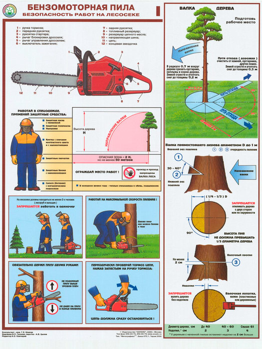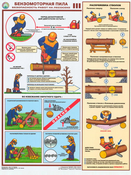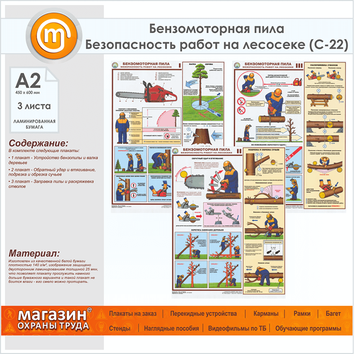 Плакаты «Бензомоторная пила. Безопасность работ на лесосеке» (С-22, ламинированная бумага, А2, 3 листа) в Уфе купить