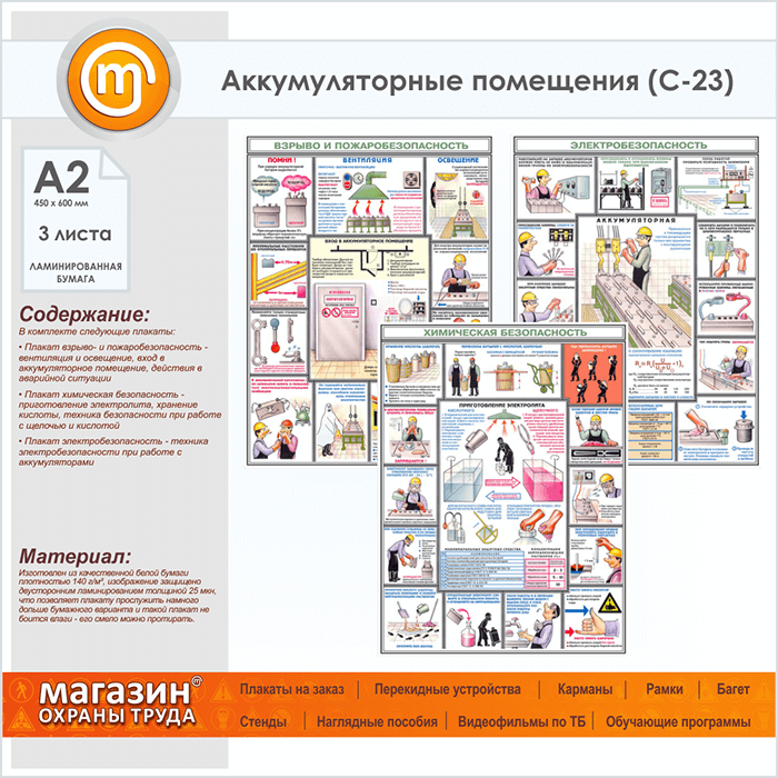 Плакаты «Аккумуляторные помещения» (С-23, ламинированная бумага, А2, 3 листа) в Уфе купить