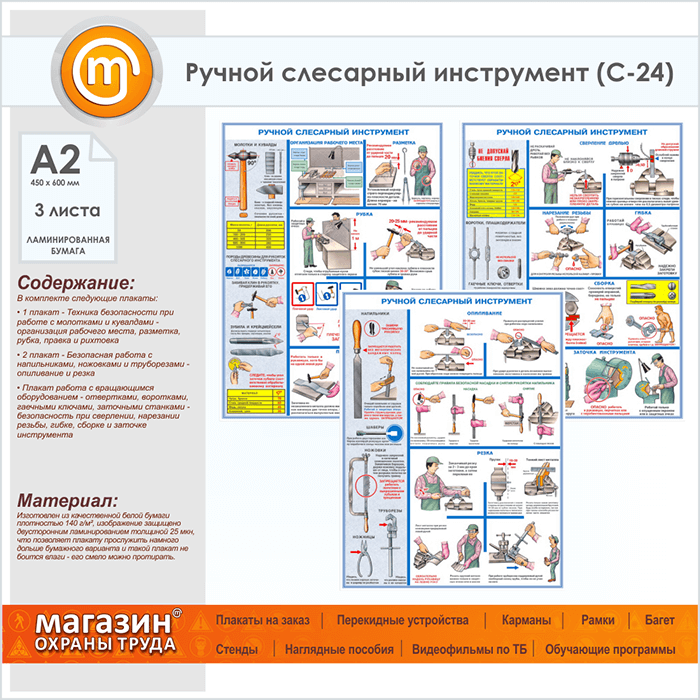Плакаты «Ручной слесарный инструмент» (С-24, ламинированная бумага, А2, 3 листа) в Уфе купить