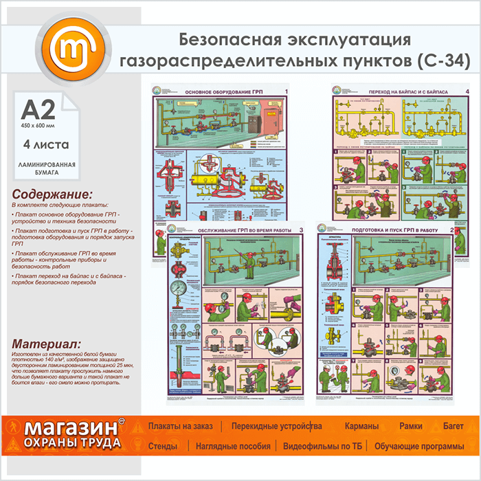 Плакаты «Безопасная эксплуатация газораспределительных пунктов» (С-34, ламинированная бумага, А2, 4 листа) в Уфе купить