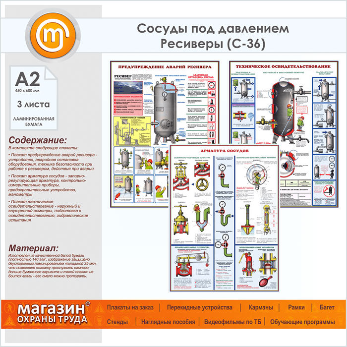 Плакаты «Сосуды под давлением. Ресиверы» (С-36, ламинированная бумага, А2, 3 листа) в Уфе купить