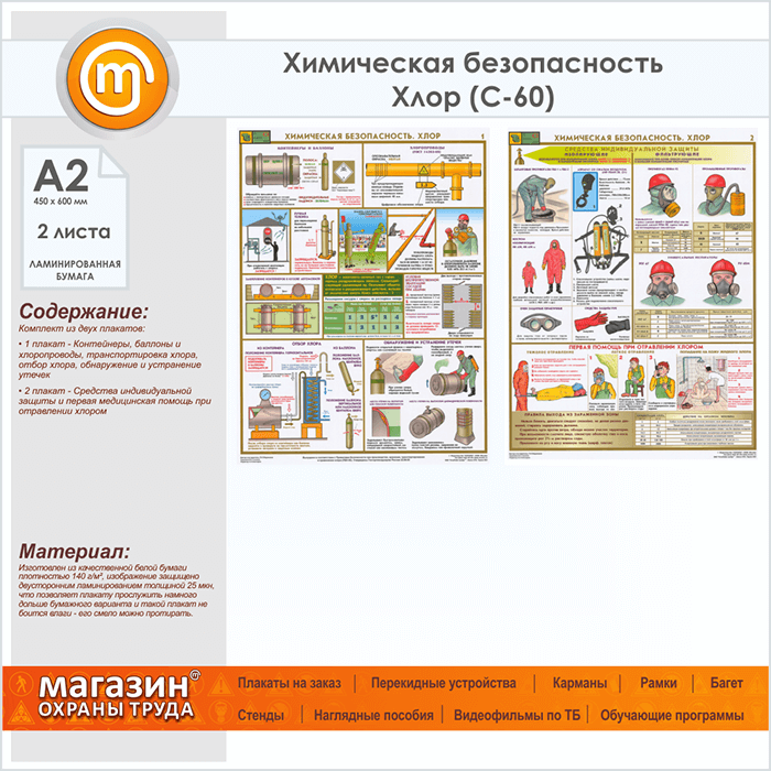 Плакаты «Химическая безопасность. Хлор» (С-60, ламинированная бумага, А2, 2 листа) в Уфе купить