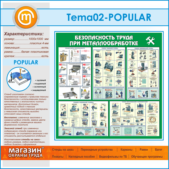 Стенд «Безопасность труда при металлообработке» (TM-02-POPULAR) в Уфе купить