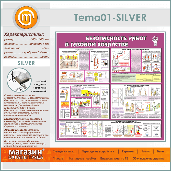 Стенд «Безопасность работ в газовом хозяйстве» (TM-01-SILVER) в Уфе купить