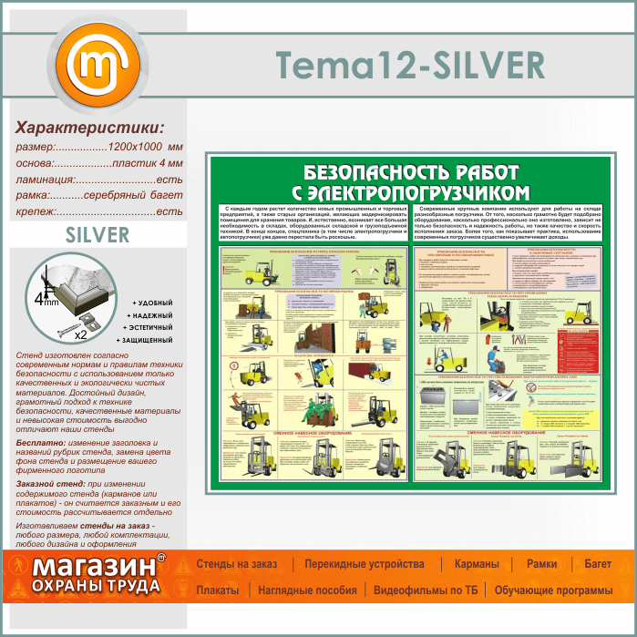 Стенд «Безопасность работ с электропогрузчиком» (TM-12-SILVER) в Уфе купить