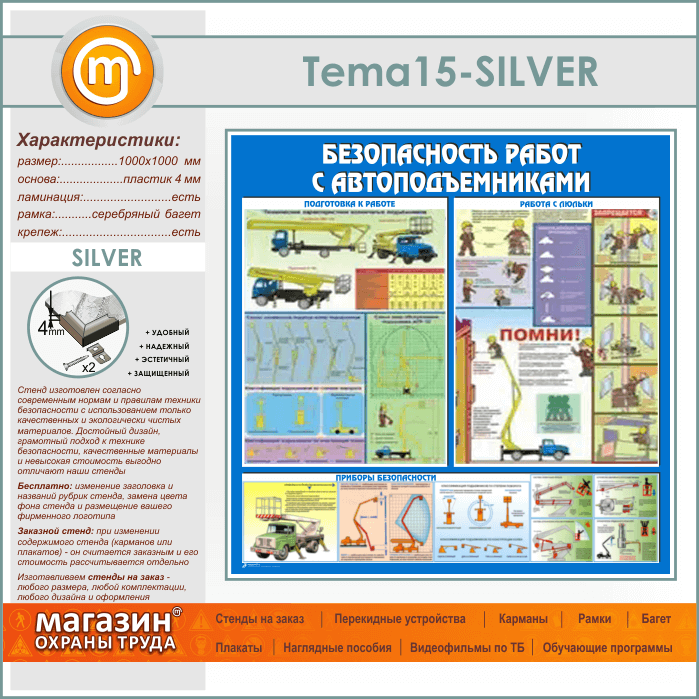 Стенд «Безопасность работ с автоподъемниками» (TM-15-SILVER) в Уфе купить