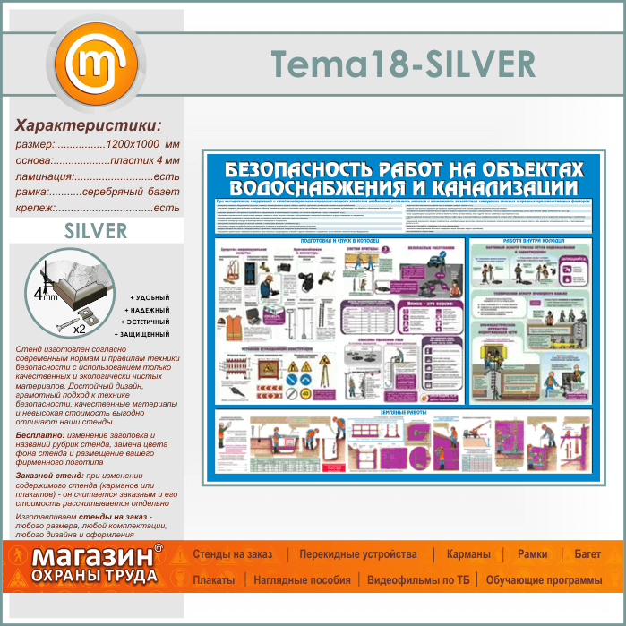 Стенд «Безопасность работ на объектах водоснабжения и канализации» (TM-18-SILVER) в Уфе купить